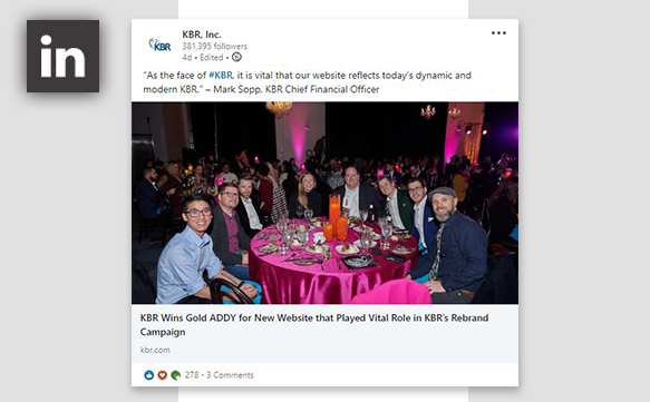 KBR recently won the prestigious Gold ADDY in the “Websites B-to-B” category at the 2020 American Advertising Federation Awards in Houston. The award recognized the new KBR.com website as one of the most advanced websites in the industry!